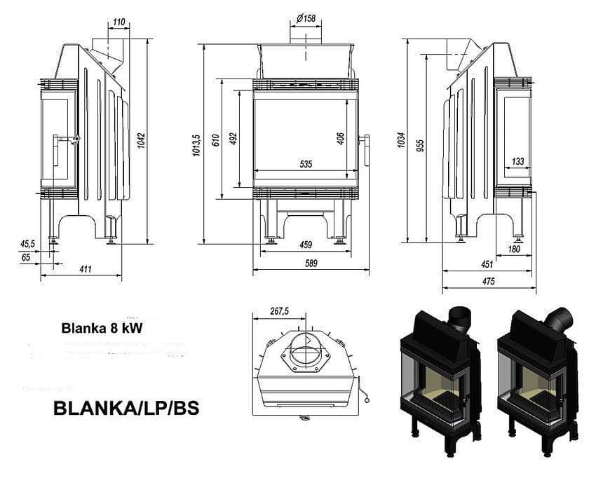 BLANKA 8 links/rechts BS - (8kW) Warmluftkamin