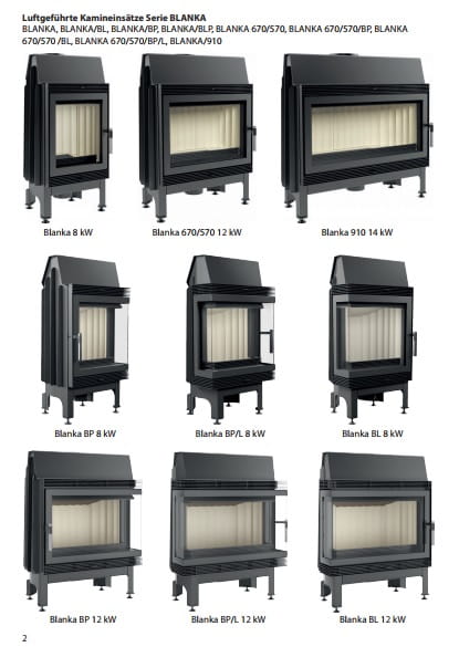 *Bauart 2 - Heizeinsätze (feste Brennstoffe) der Bauart 2 haben eine nicht selbstschließende Feuerraumtür und dürfen nicht mit anderen Heizgeräten an einem Schornstein betrieben werden.