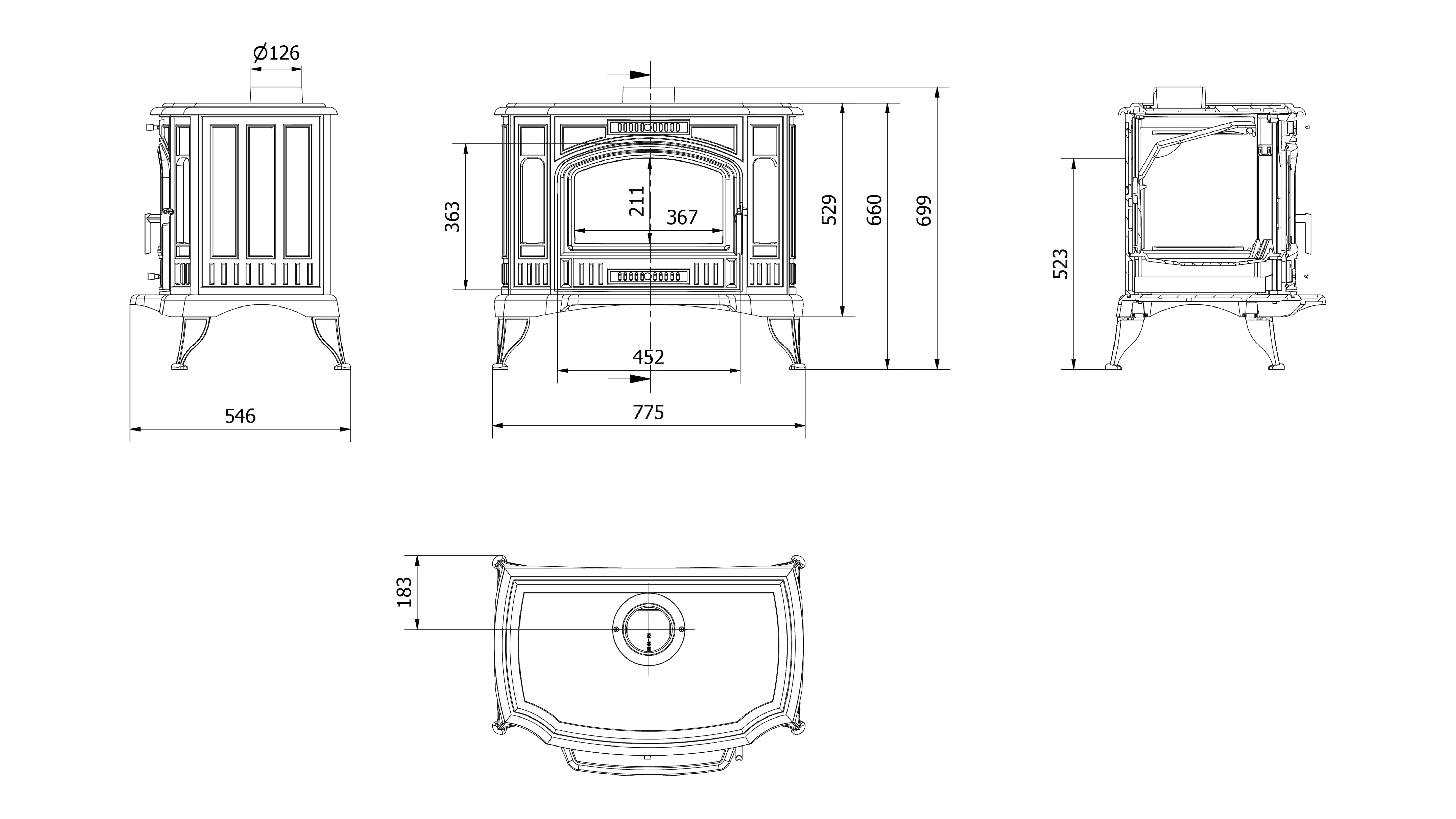 Rauchrohrausgang hinten und oben: Ø 130 mm