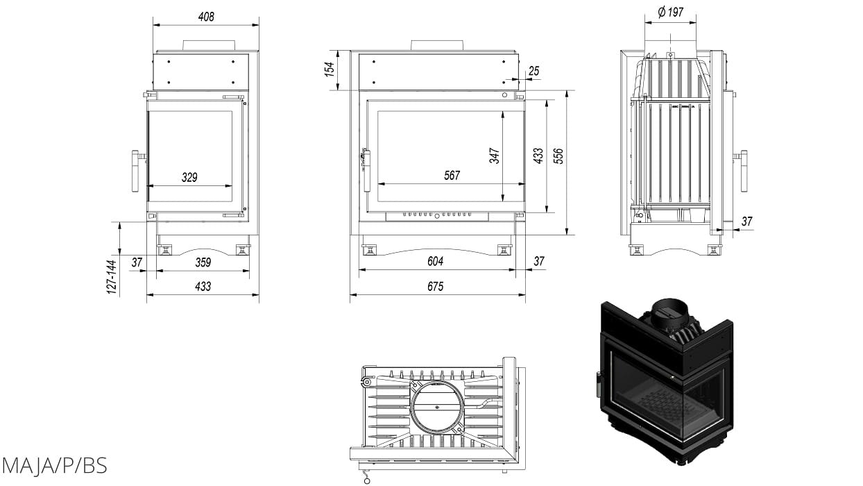 Technische Daten: Traditioneller Gusseisen - Kamineinsatz MAJA/L/BS