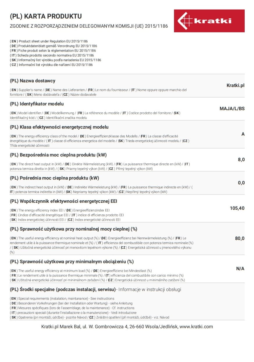 Die Firma Kratki.pl Marek Ball garantiert Ihnen Lieferung der Ersatzteile während der Nutzung des Kamins. Zu diesem Zweck brauchen Sie nur mit unserer Verkaufsabteilung oder einer der nächsten Verkaufsstellen einen Kontakt aufzunehmen.
