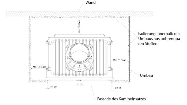 Luftauslassgitter für luftgeführte gusseiserne Kamineinsätze bis 12 kW beträgt: