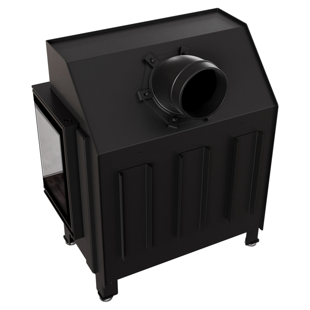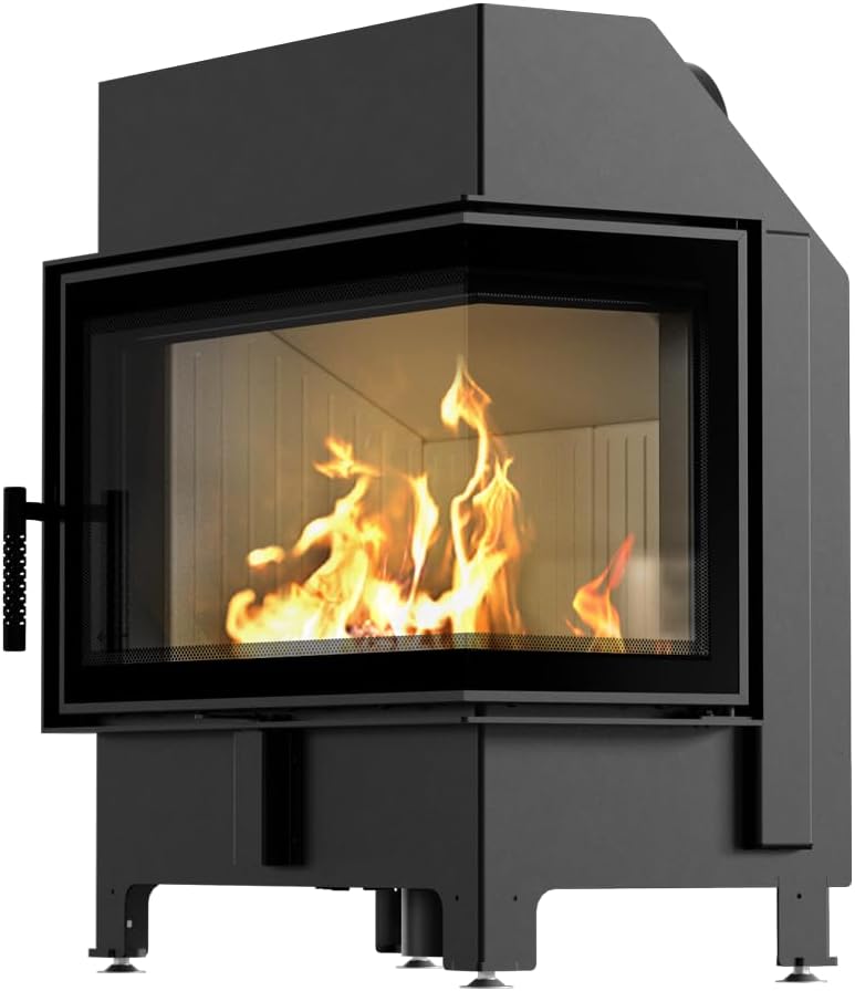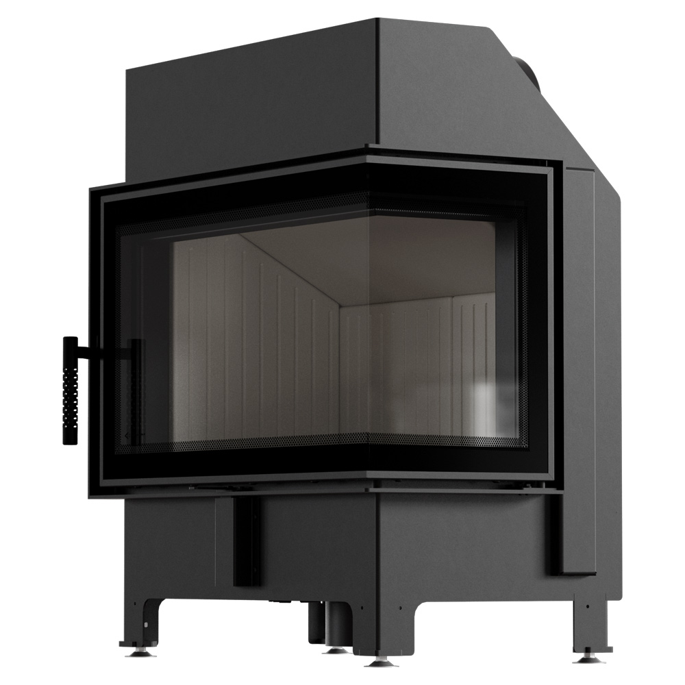 KRATKI - Warmluft Kamineinsatz ZIBI ECO (9,9 kW) Ø 180 Eck Verglasung rechts für Dauerbrand geeignet