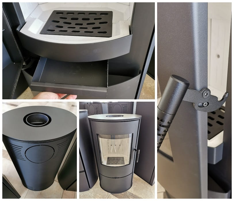 Der Freistehenden Ofen Koza ROLLO besitzt auch einen Luftvorhang. Die durch das Lenkrad geleitete Luft