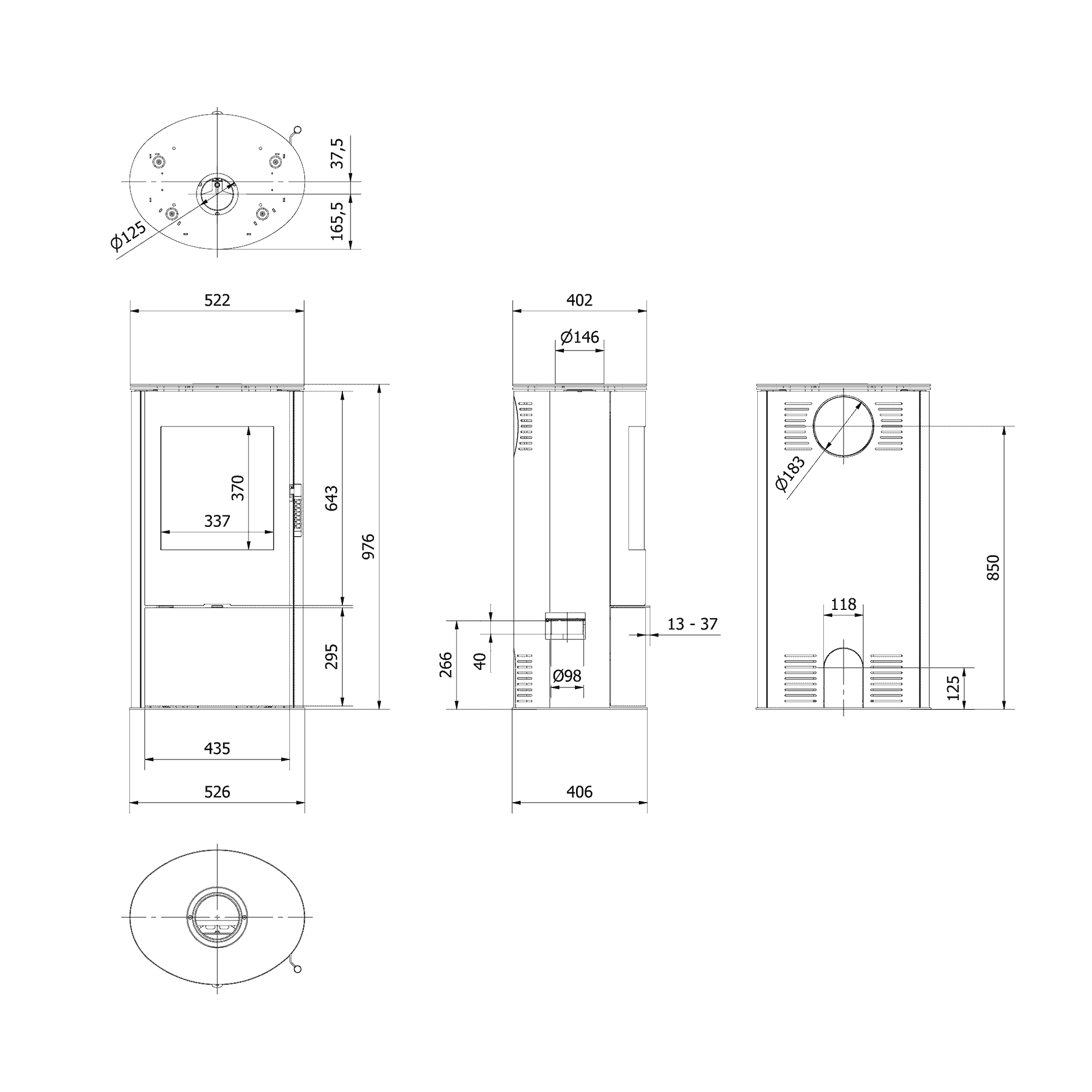 Der Ofen besitzt einen eingebauten Regler der Zufuhr der Luft von außen – einen Zuluftstutzen Ø 100 mm.