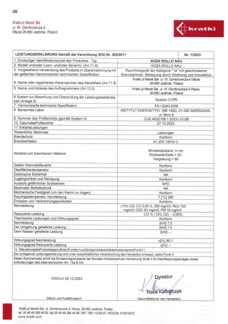 Die Brennkammer Kaminofen Koza ROLLO kann vom Raum oder von außen belüftet werden.