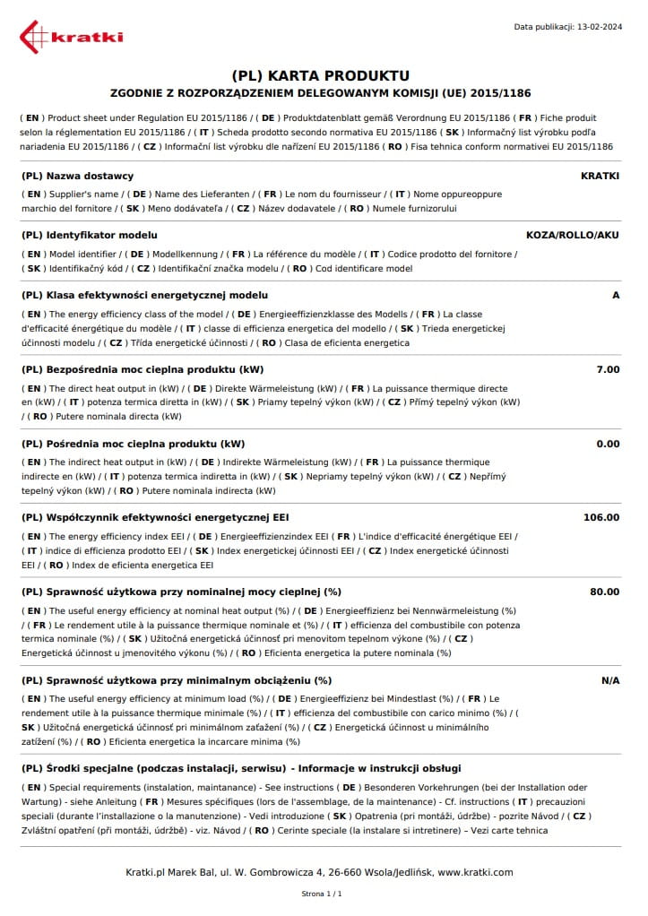 KRATKI - Stahl Kaminofen -ROLLO/W - Holzofen (7kW) Rauchrohranschluss Ø 150