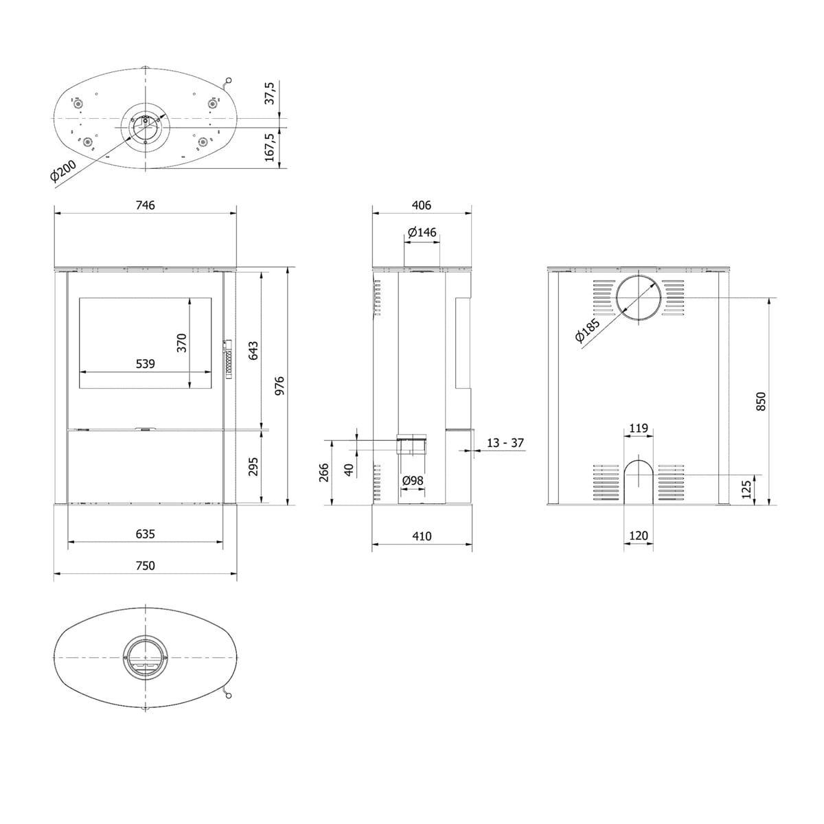 - hitzebeständige Verglasung mit einer Temperaturbeständigkeit von bis zu 600°C,