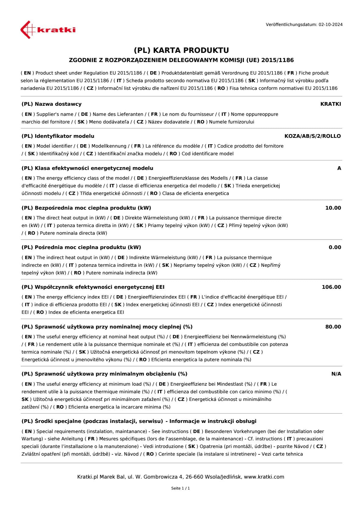 KOZA/AB/S/2/ROLLO erfüllt die Emissionsgrenzwerte von EKOPROJECT.