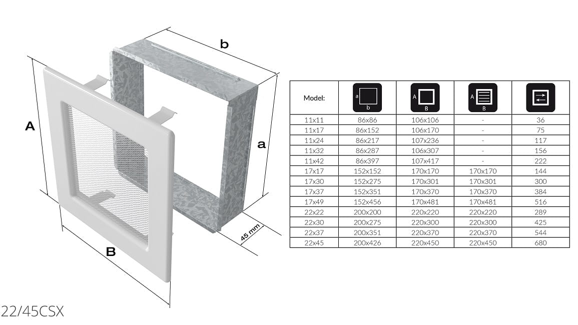 Lüftungsgitter Grösse (BxHxT) cm: 45,0 x 22,0 x 4,50