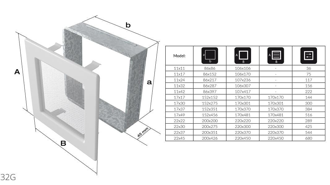 Die Lüftungsgitter sind pulverbeschichtet, dadurch ist das Risiko des Wasserflecks verhindert, die Oberfläche der Luftgitter ist hart und gegen mechanische und chemische Schäden, sowie auch gegen hohe Temperaturen und Wetterbedingungen beständig.